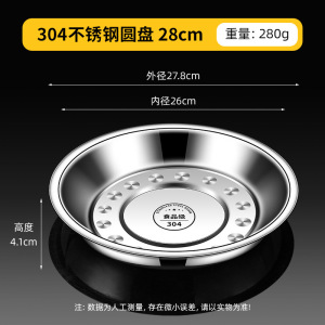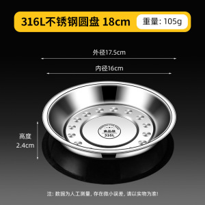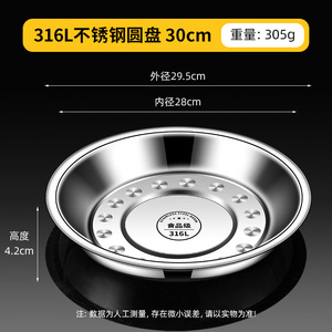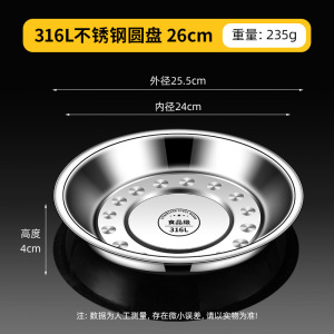 ~316不锈钢圆盘食品级加厚家用厨房碟子304菜盘餐盘烧烤商用盘子