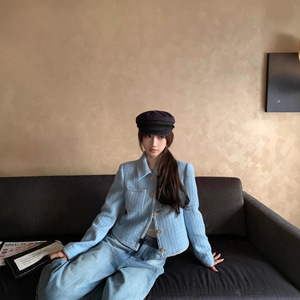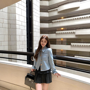 2025早秋新款南油cha高级感小香风设计减龄翻领长袖外套半身短裙