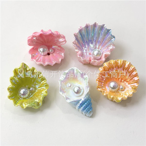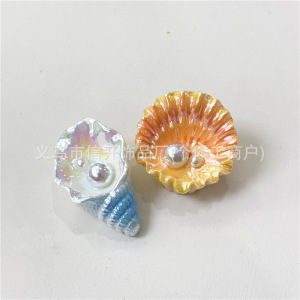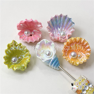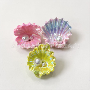 带孔电镀树脂立体珍珠贝壳串珠笔配件 手机钥匙链包链diy手工材料