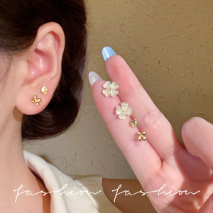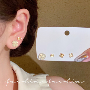 法式复古猫眼石花朵套装耳钉精致小巧百搭耳环睡觉免摘养耳洞耳饰