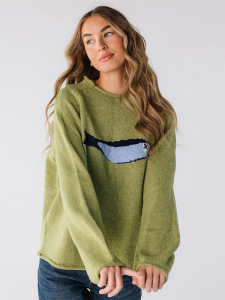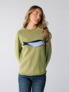 2025跨境秋冬时尚新款宽松慵懒风套头圆领小鱼图案针织毛衣女