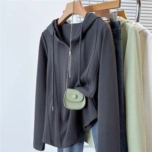 连帽卫衣遮肚子显瘦上衣长袖大码女装休闲简约百搭女胖恤春秋