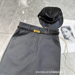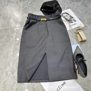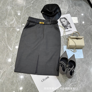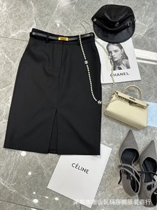 南油2025新款高腰开叉半身裙女高级感半裙显瘦职业包臀裙过膝中裙