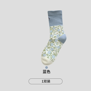 CHEEMY FREE秋季新款复古刺绣中筒女袜满身碎花森系潮袜风堆堆袜