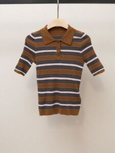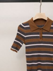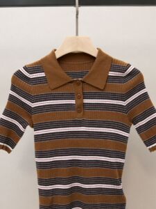 深圳南油高端女装秋季新款法式显瘦复古翻领短袖条纹POLO针织衫女