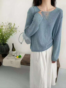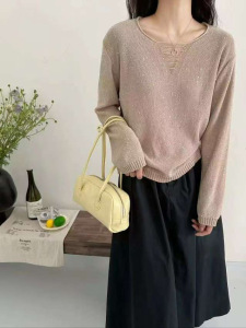 0903-151和子纱秋季高品质2025 秋装V领 套头衫 针织衫上衣女装