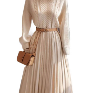 今年流行漂亮毛衣裙独特超好看长款打底裙杏色针织内搭连衣裙秋冬