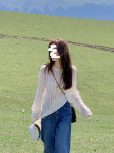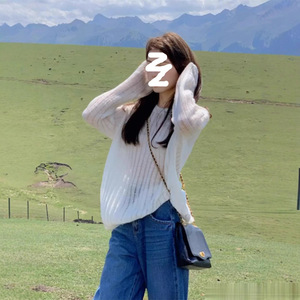 白色针织衫女初秋长袖上衣2025新款气质宽松微透镂空外搭吊带罩衫