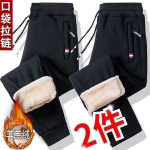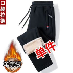 秋冬季羊羔绒加绒加厚休闲裤男士运动保暖束脚卫裤男大码宽松长裤