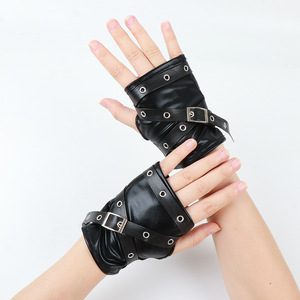 暗黑半指手套女士哥特黑色无指短款手袖套原宿辣妹个性小众Y2K