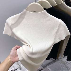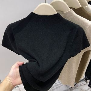 2025春秋季新款半高领软糯短袖恤针织衫女修身显瘦打底上衣