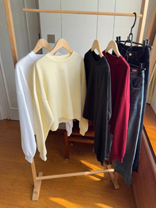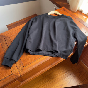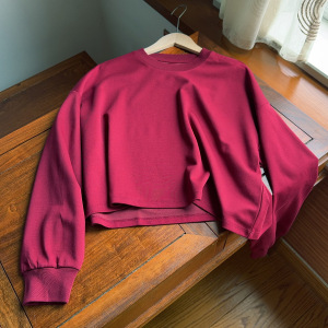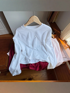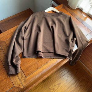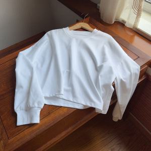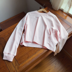 实力工厂辣妹风圆领短款长袖落肩T恤女早秋宽松休闲显瘦上衣卫衣