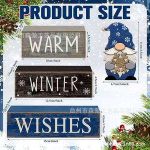 跨境四件套圣诞节木质装饰冬季桌面冬天雪花雪人木质室内厨房桌面