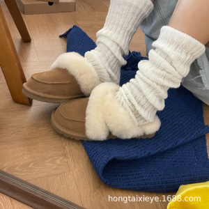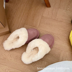 河南桑坡村2025新款女士时尚舒适毛茸款羊毛包头拖外穿懒人毛毛鞋