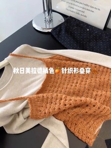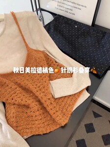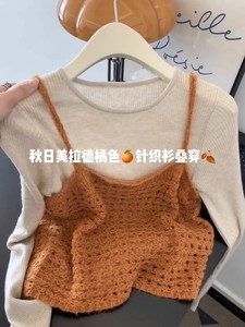 2025秋季新款韩系温柔风镂空针织吊带背心叠穿修身打底上衣两件套