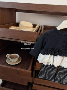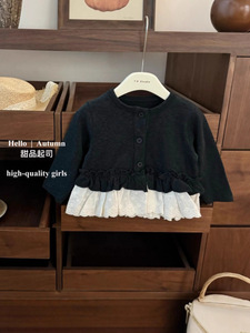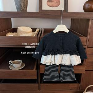 女童套装2025新款秋季洋气韩版外套花边两件套开衫喇叭裤春秋套装