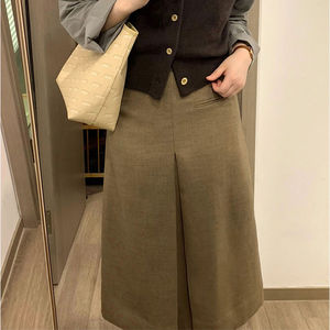 秋装搭配一整套小个子港风复古咖色马甲衬衫韩剧穿搭三件套装裙