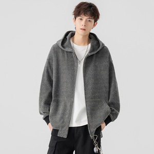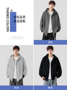 NASA连帽男士纹理感开衫卫衣春秋季新款美式复古百搭痞帅宽松上衣