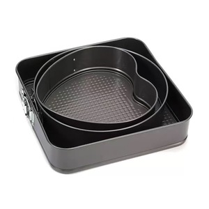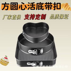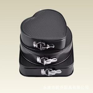跨境心形圆形方形蛋糕模三件套碳钢不粘蛋糕模具带扣活底烘培工具