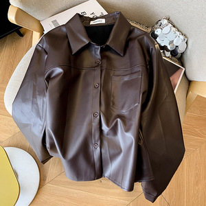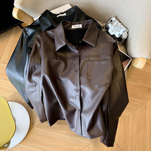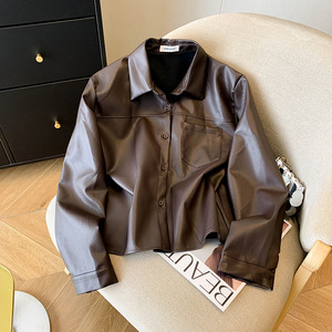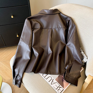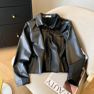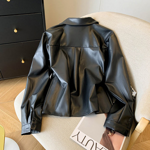 黑色pu短款气质翻领皮衣女秋季2025新休闲时尚百搭高级感皮外套