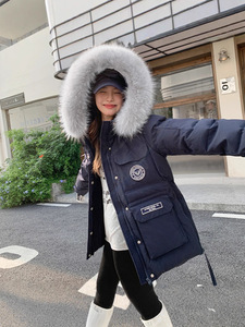 2025超大真毛领连帽工装派克服羽绒服女冬季加厚中长款外套高级感