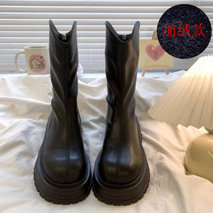 厚底粗跟马丁靴女美拉德秋冬季新款百搭短靴复古英伦风单靴潮机车