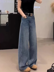 大码女装2025春季新款高腰宽松阔腿牛仔裤胖遮胯显瘦直筒拖地裤