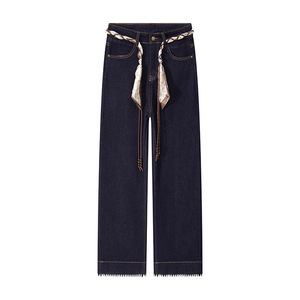 3328#丹宁色九分(送丝带)(身高159以上拍)