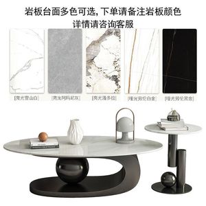 轻奢小户型岩板椭圆形茶几出租房用茶几家用客厅爆款桌子网红简易