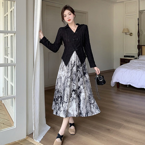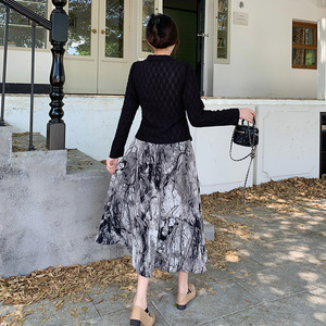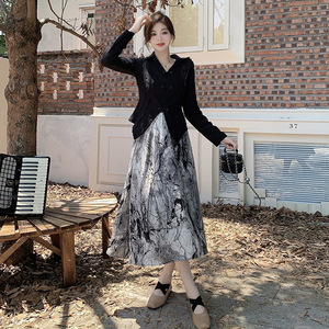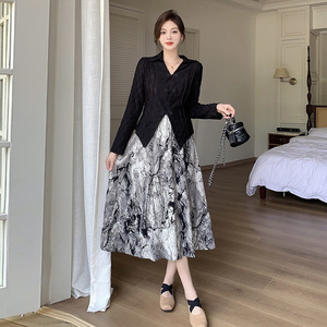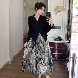 实拍2025秋胖mm大码新中式盘扣上衣水墨画半身裙国风两件套61559