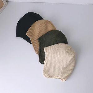 宝宝帽子春秋薄款韩国纯色针织套头帽秋冬保暖男女儿童护耳毛线帽