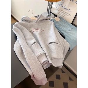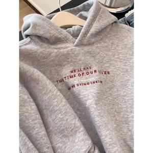 灰色字母印花长袖连帽卫衣女秋冬氛围感慵懒风宽松加绒休闲外套