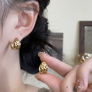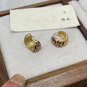 复古简约设计感豹纹耳环圆球耳扣气质时尚百搭高级耳环新款耳饰品