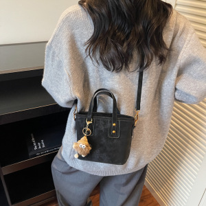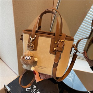 质感拼接手提包百搭水桶包包女2025秋冬新款时尚单肩包通勤斜挎包