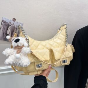 小香风菱格链条包流浪包女高级感小众中古腋下包大容量斜挎托特包