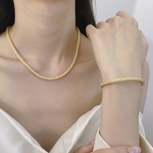 潮晟s925纯银韩版轻奢风蛇袋满钻手链项链套装时尚潮流百搭饰品
