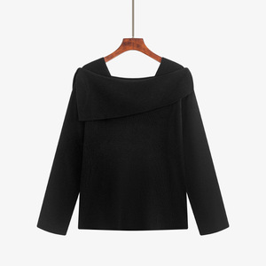 大码女装设计感不规则上衣女2025秋款胖mm宽松一字领针织衫23173