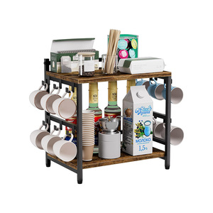 亚马逊同款吧台双层多功能置物架收纳架铁木马克杯水杯咖啡置物架