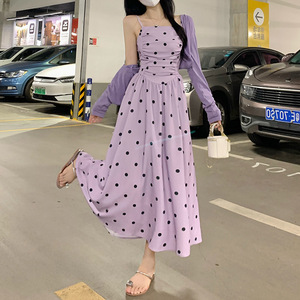 惊艳炸街两件套2025春秋季新款波点连衣裙长袖开衫套装女大码代发
