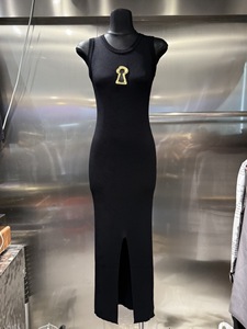 气质名媛风高级感半高领无袖针织长裙2025新款夏季女装黑色连衣裙