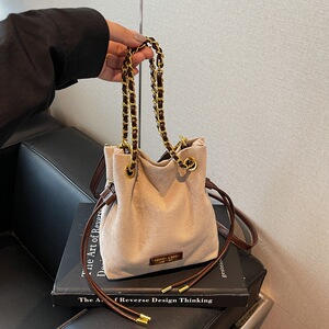 包女款小包链条手提包2025新款麂皮绒水桶包简约百搭单肩斜挎包