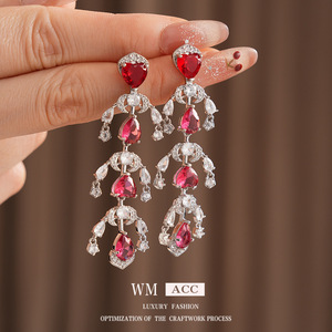 银针锆石爱心水滴流苏耳环轻奢高级感耳钉复古宫廷风夸张耳饰批发