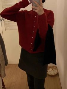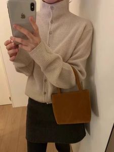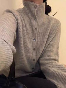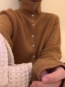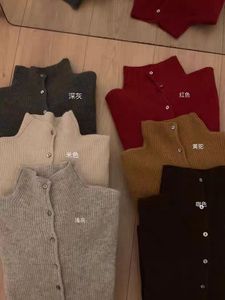 小众别致!100%羊毛针织开衫女立领短款秋季宽松翻领羊绒外套上衣