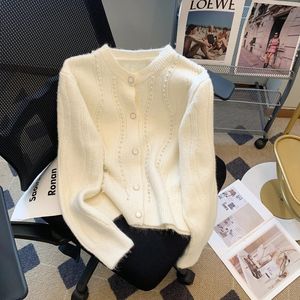 2025秋冬新款韩版小香风钉珠软糯温柔气质针织开衫女上衣毛衣外套
