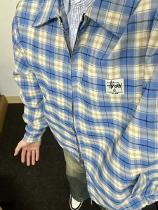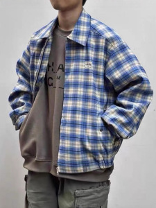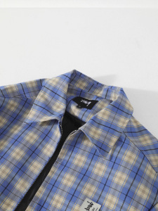 高品质STU斯图街潮美式格纹翻领夹克宽松经典拉链外套男女同款