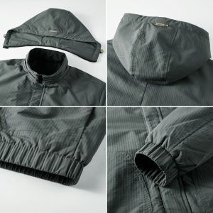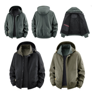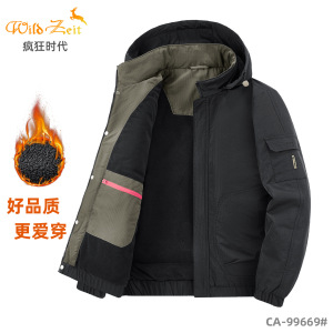 条纹夹克男秋冬季新款加绒工装外套潮牌宽松大码美式休闲连帽棉衣