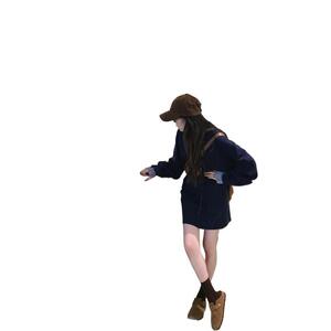 休闲运动服套装女秋季韩系风格子卫衣短裙甜酷少女简约显瘦两件套