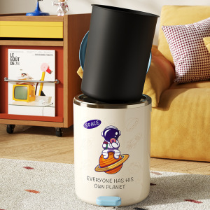 中号圆形【太空人脚踏垃圾桶】天空蓝