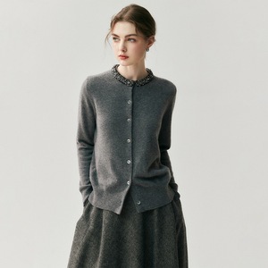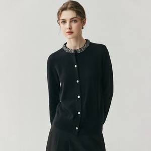 2025秋冬新款轻奢蓬松钉珠山羊绒针织开衫女圆领显瘦毛衣外套羊毛