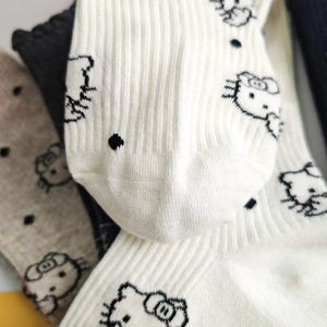 一体机秋冬新品新款袜子女秋冬季中筒袜花边卡通小猫高筒袜精梳棉